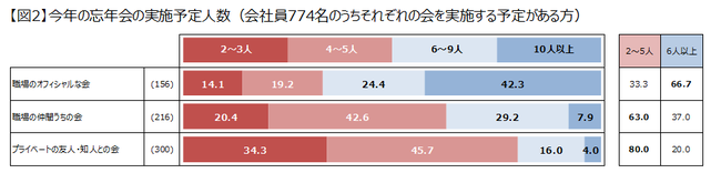 身近な人との忘年会は少人数&複数回実施で分散傾向に