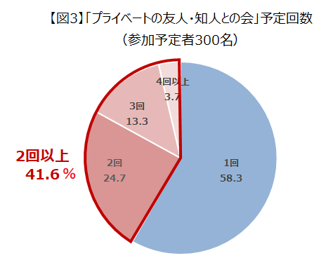 また、「プライベートの友人・知人」との忘年会に参加予定の方の中で、2回以上実施する人が41.6%にのぼることがわかりました。(図2)