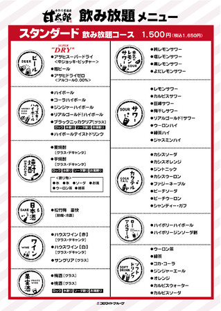 ※左が甘太郎、右が土間土間飲み放題メニュー