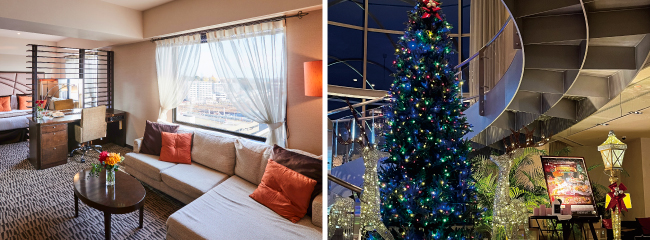 エントランスではきらめくクリスマスツリーが皆様をお迎えいたします。ホテルテラスザガーデン水戸で大切な人と素敵なクリスマスの一日をお過ごしください。