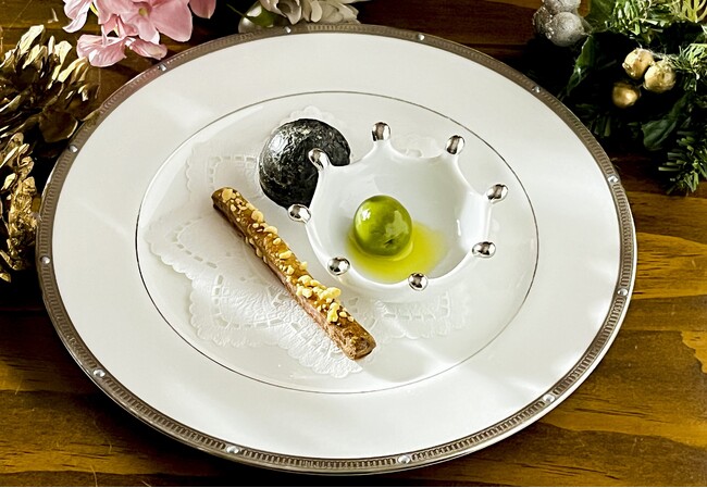 炭のグージェール 紫いものバトネフロマージュ 小豆島のオリーブ漬