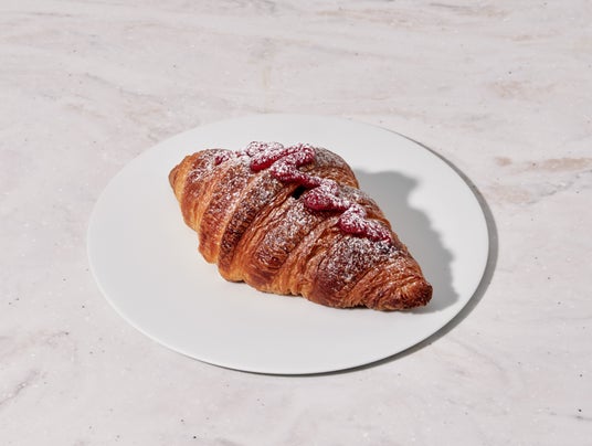 風味豊かな発酵バターを丁寧に生地に織り込んで焼き上げ、ザクザクとした心地よい歯ごたえのコルネッティに、滑らかなチョコレートクリームを中に絞り、天面にラズベリージャムをトッピングしました。ラズベリージャムはチョコレートクリームと合わせた時に甘過ぎないよう、プリンチ(R)のキッチンで丁寧に炊き上げています。