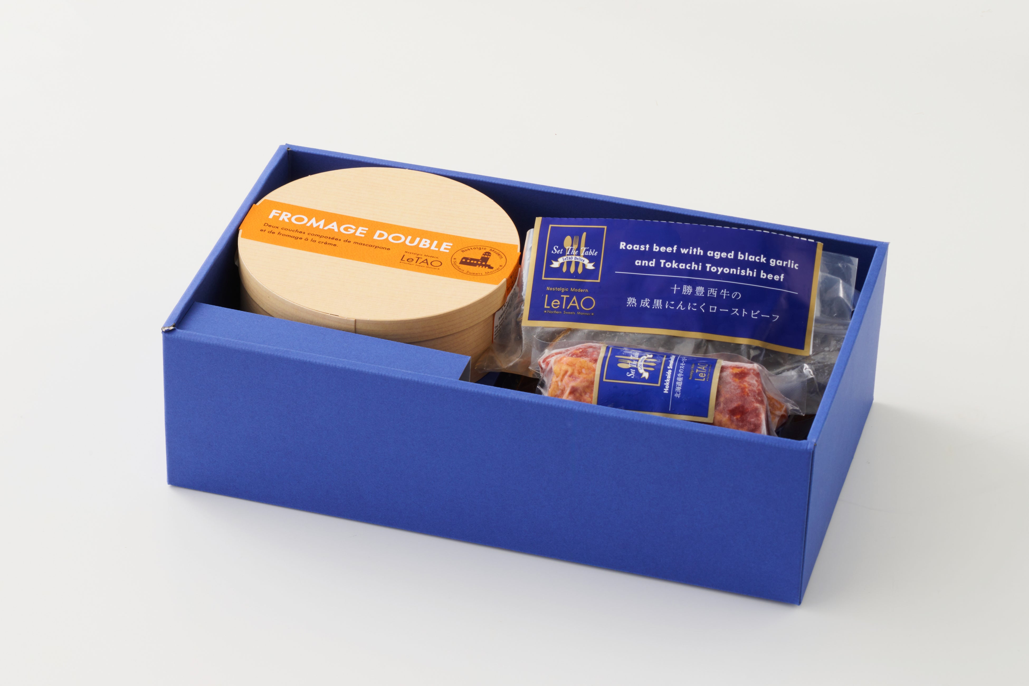 御歳暮のギフトシーズンにあわせて、スイーツとデリカテッセンを詰め合わせた、数量限定のギフトボックスセットをご用意いたしました。セット内容は、1番人気のドゥーブルフロマージュをはじめ、毎年根強い人気のお肉のデリカテッセンを選びました。さらに今回特別に、セットのみの限定商品として新たに「北海道産牛のスモークビーフ」を開発し、詰め合わせました。贈り物としてもお使いいただけるように、高級感のあるギフトボックスでお届けいたします。