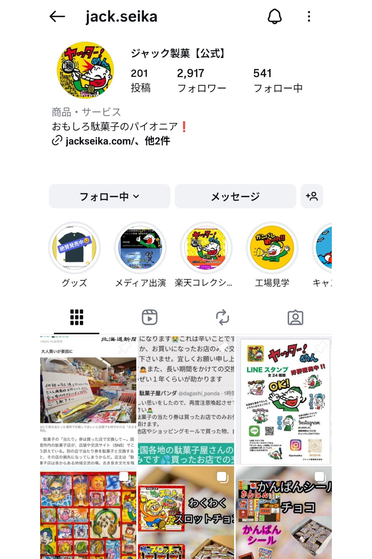 ジャック製菓公式インスタグラム