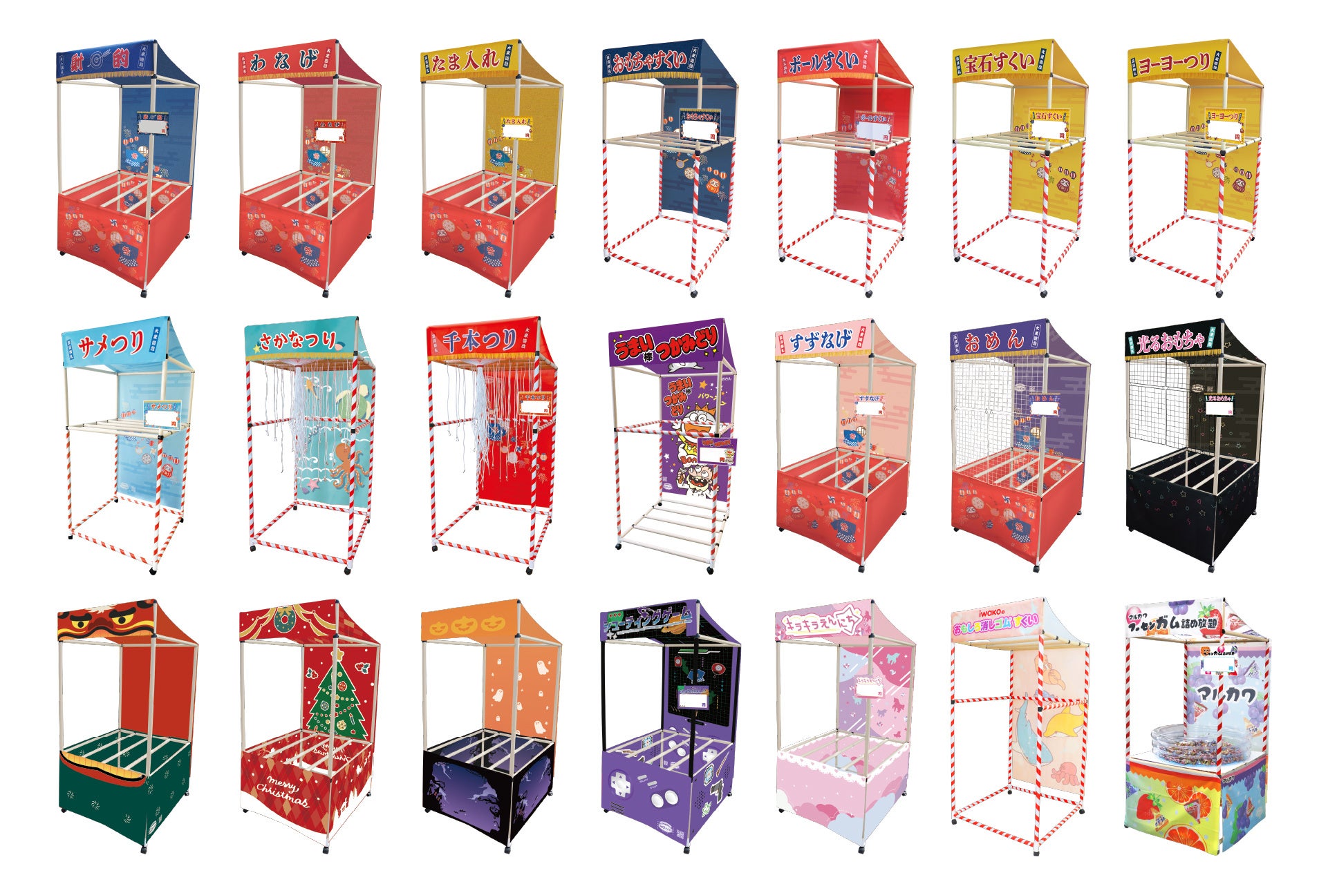 これまでに21種の縁日あそびができる屋台を発売しております。今後もさらに展開を増やしていきます。