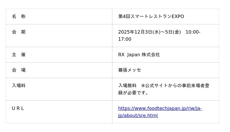 ポスタス株式会社(本社:東京都中央区、代表取締役社長:本田 興一、以下:ポスタス)は、2025年12月3日(水)~5日(金)に幕張メッセで開催される「第4回スマートレストランEXPO」に出展します。