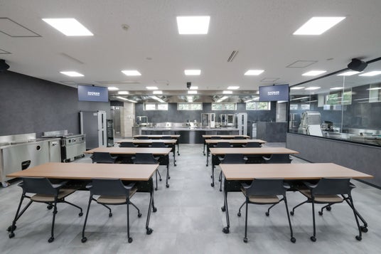 テストキッチン・セミナールーム最新機器が使用できるテストキッチンでは、導入前の機器のテストや調理セミナーが開催できるスペースもご用意しております。ご購入前に店舗でご使用になる食材・メニューをご使用いただいた調理テストも可能です。