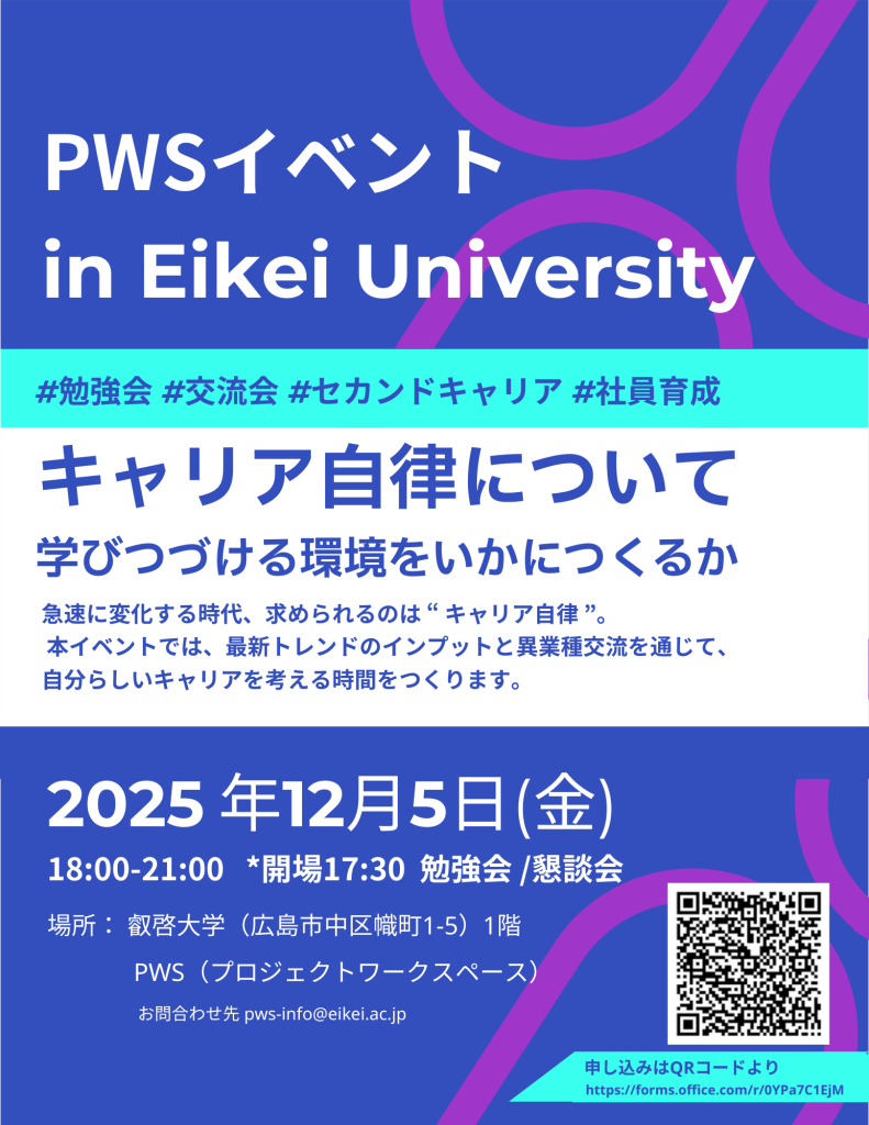 【参加者募集】12月5日(金) 【PWSイベント】キャリア自律について~学び続ける環境をいかに作るか~ - 【公式サイト】広島県公立大学法人 叡啓大学