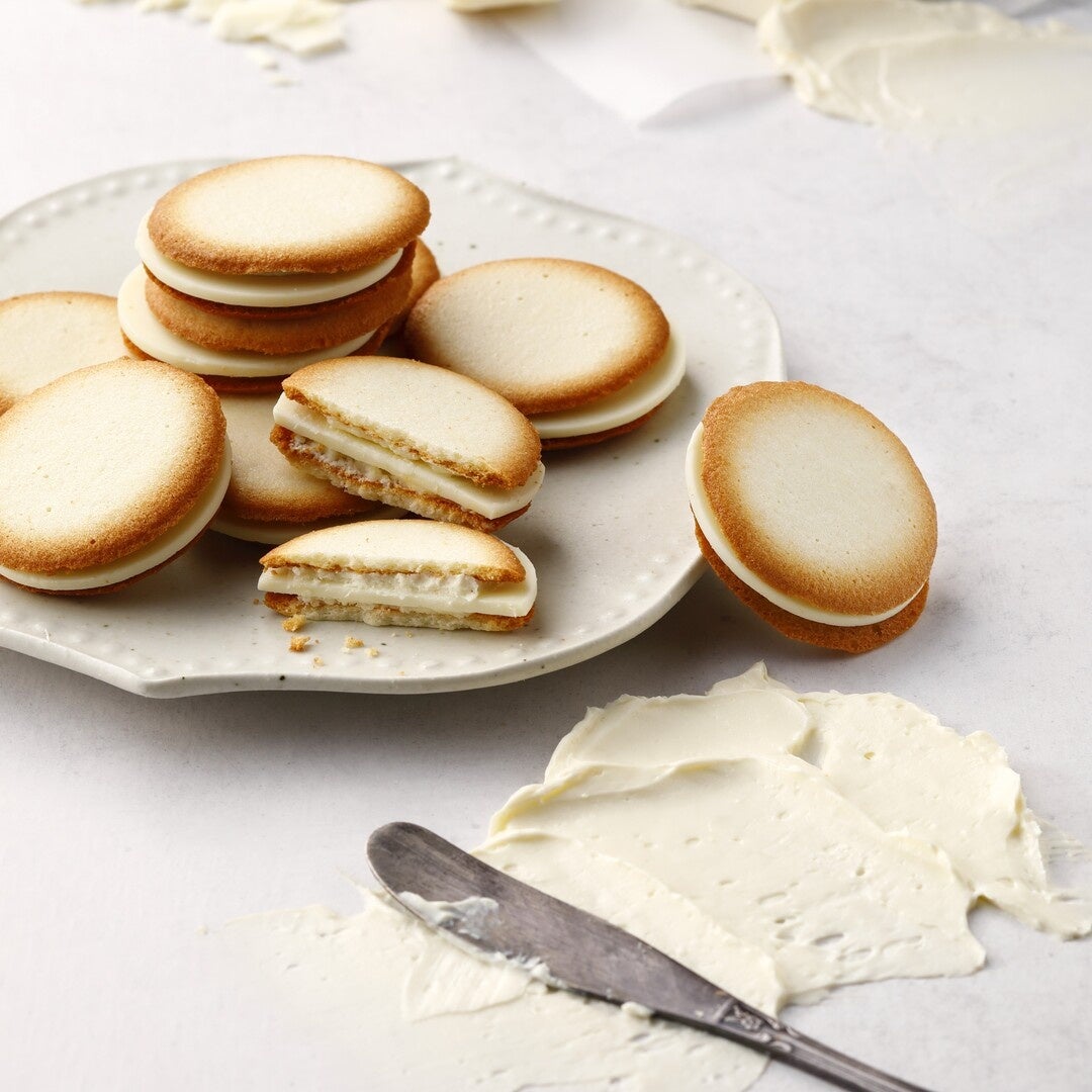 チーズガーデンの『チーズラングドシャ』は、口の中でほどけるような軽い食感の薄焼きクッキーで、ホワイトチョコレートとチーズクリームをサンドした一品です。幅広い年代の方から愛されているチーズガーデンの人気の焼菓子のひとつで、様々なシーンでご利用いただいております。