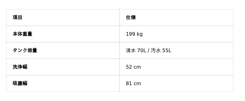 洗浄幅52cm、吸塵幅81cmで効率的な作業を可能にします。