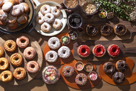 トロリーやブッフェ台やには色とりどりのドーナツやコンディメントが並び、思わず写真を撮りたくなるフォトジェニックな空間が広がります。