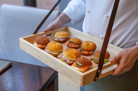 甘いだけではない“しょっぱい系”ドーナツもご用意。スモークサーモンとクリームチーズ、モルタデッラとレタスのサンドなど、ドーナツを使った軽食をブッフェ台に加え、スタッフがテーブルを回りながらご提供します。