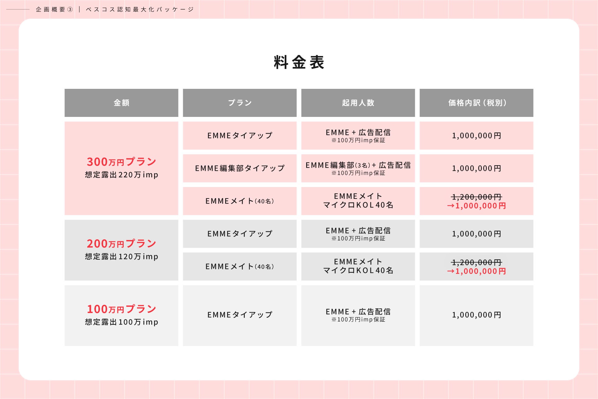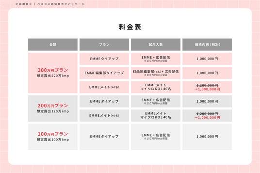 本プランは、月間平均2億IMPを誇るメディア発信力と、美容関心度が高く自発的な発信を行う「EMMEメイト」へのギフティングを組み合わせることで、ベスコス発表シーズンの12月にSNS全体での話題醸成を効率的に実現します。