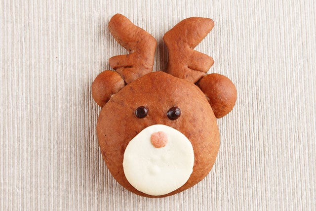 ココア生地のかわいいトナカイパンの中には、チョコレートクリームがたっぷり入っています。