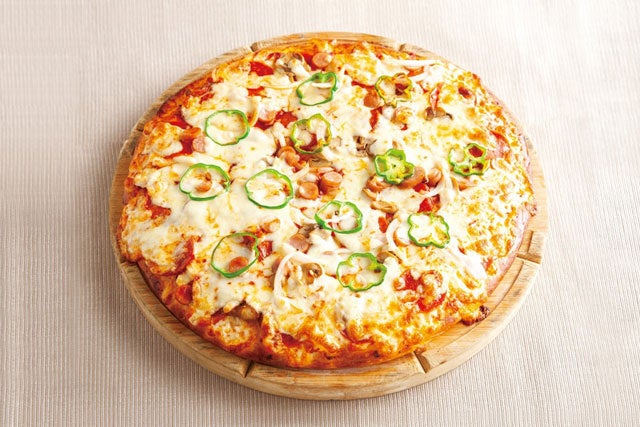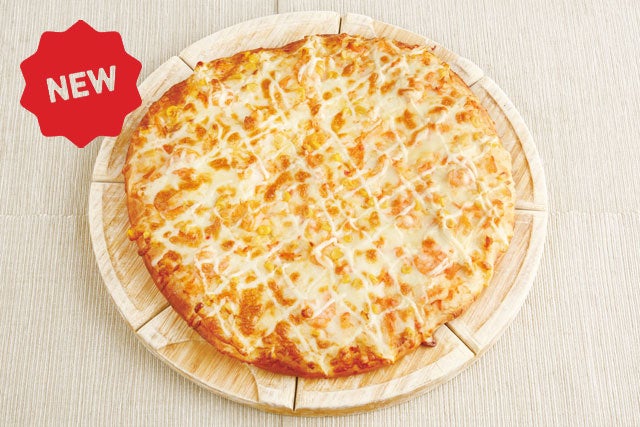 ふわふわのピザ生地の上になめらかなズワイガニクリームを塗り、カニのほぐし身・カニカマ・エビをトッピング。コーン・チーズ・マヨネーズと一緒に焼き上げ、カニとエビを一度に楽しめる贅沢なピザに仕上げました。