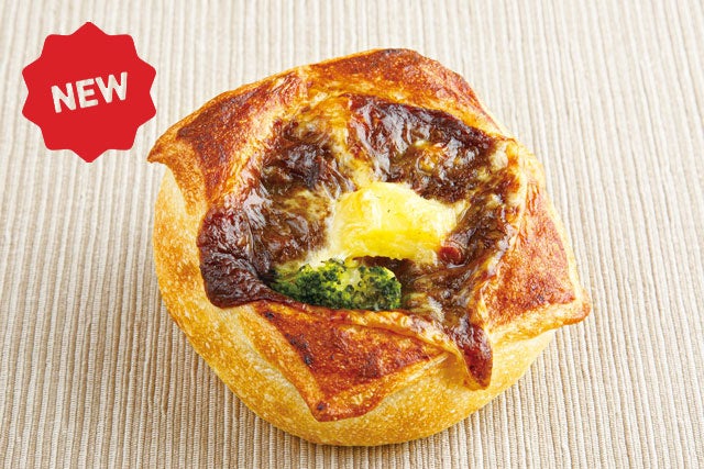 フランスパンに濃厚なビーフシチューをたっぷり入れて焼き上げました。食卓を彩る冬にぴったりのご馳走パン!