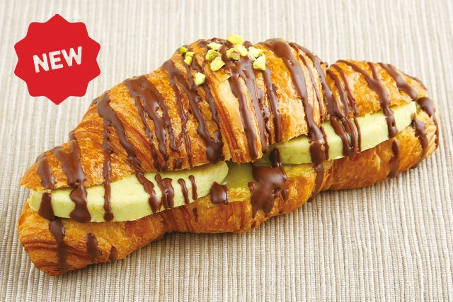 クロワッサンにピスタチオペーストを塗り、サクサクのカダイフを入れた濃厚なピスタチオチョコレートをサンド。大流行のドバイチョコを513風にアレンジしました。