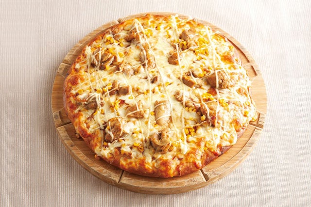 ふわふわのピザ生地の上に照り焼きチキンをゴロゴロのせました。