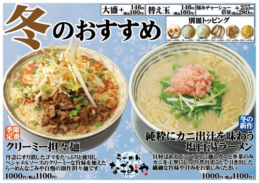 愛知県にて飲食店を展開する株式会社プレジャー(本社:愛知県尾張旭市、代表:小山和紀)が運営する、愛知県春日井市【らーめんなごみや高蔵寺店】は2025年12月6日(土)より、【冬のおすすめ】メニューを販売開始いたします。
