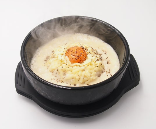 ◆たっぷりチーズのカルボナーラリゾット:チーズと卵黄、ご飯とベシャメルソースを混ぜてカルボナーラ風リゾットに。
