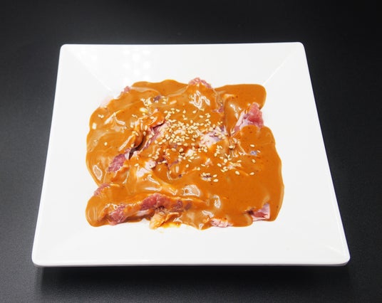 ◆ガーリックマヨネーズハラミ(ポーク):ガーリックにマヨネーズ、背徳感あふれるソースでハラミを召し上がれ。