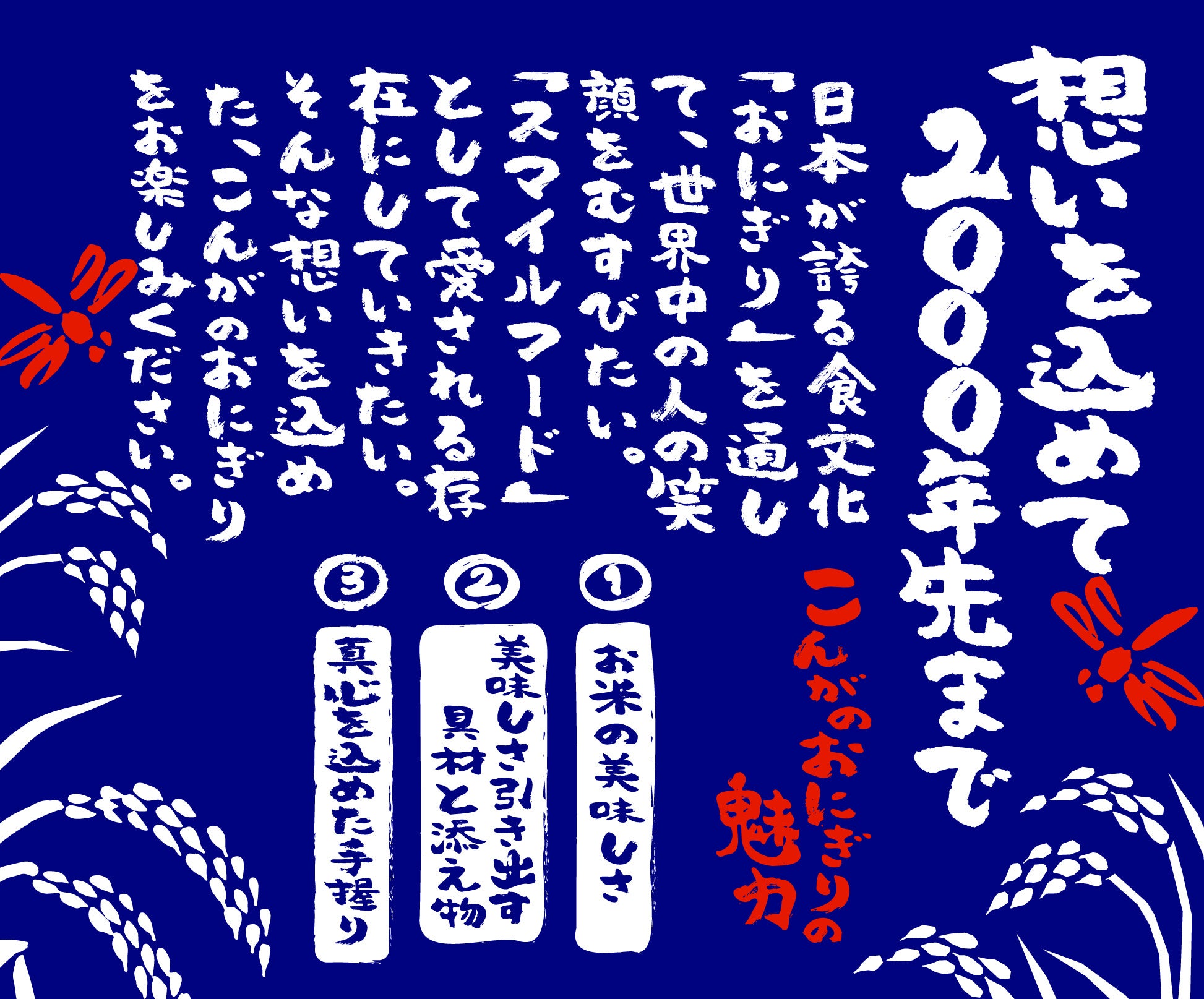 おにぎりこんがはおにぎりを通して「お客様を笑顔に スマイルフード」のブランドスローガンをもと日々営業しております。