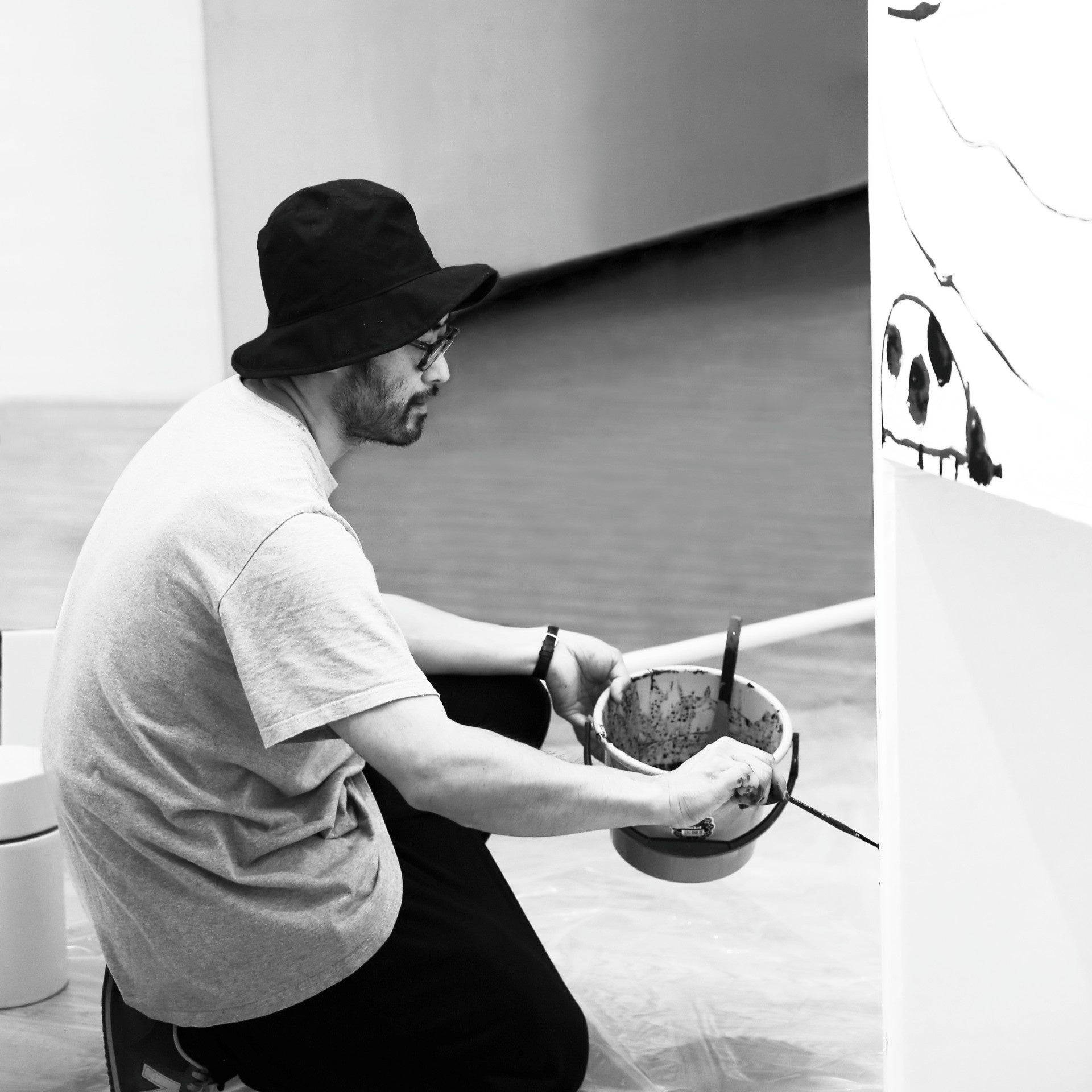 絵本作家・きくちちきさんによるライブペイントを行います。巨大なキャンバスに力強く描く姿を、目の前でご覧いただけます。迫力ある創作の時間をお楽しみください。