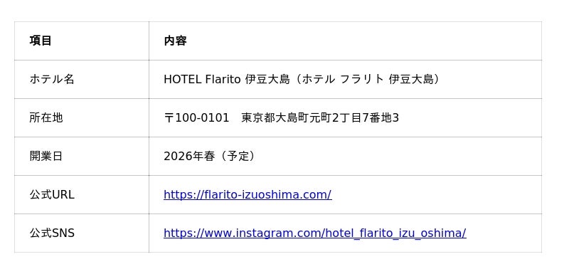 この度、伊豆大島に開業する【HOTEL Flarito 伊豆大島(ホテル フラリト 伊豆大島)】(株式会社アートファイブ(東京都豊島区池袋2丁目41-5 アーバン154 6階:代表取締役 小島弘嗣)は、2025年11月27日(木)に公式ウェブサイトをオープンいたしました。