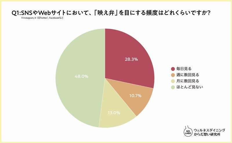 Q1:SNS(Instagram, X (旧Twitter), Facebookなど)やWebサイトにおいて、「映え弁」を目にする頻度はどれくらいですか?