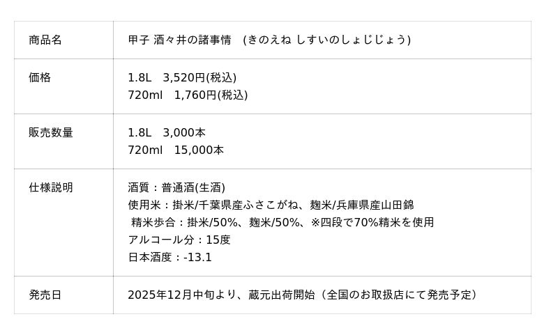 株式会社飯沼本家(本社:千葉県印旛郡、社長:飯沼 一喜)は、令和7年12月中旬より「甲子 酒々井の諸事情」を発売いたします。