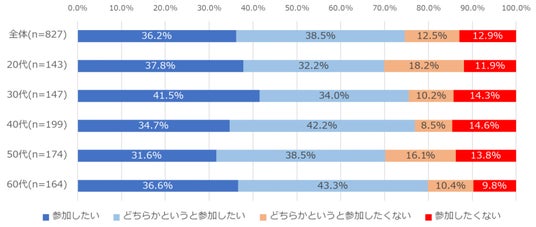 ■「友人知人との忘年会」に「参加したい・計」は74.6%、全年代で約7~8割という結果に