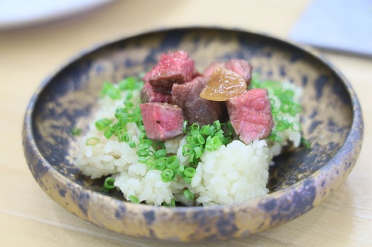 ・あきたこまちの秋田牛ステーキのせ (写真:右)