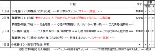 舞鶴・小樽航路55周年割引プラン~新日本海フェリー・個室船室で行く~ 舞鶴歴史探訪と初詣と冬の天橋立満喫旅4日間