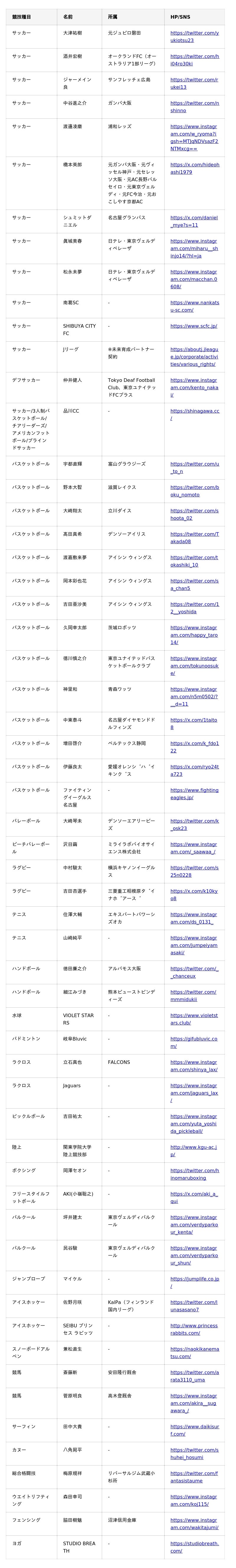 <BASE UP SPORTS サプライヤー契約一覧(現時点)>