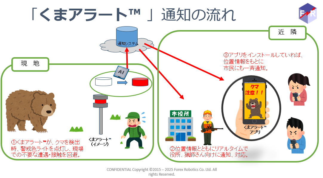 「くまアラート(TM)」の動作の仕組みは、以下の通りです。(※1)