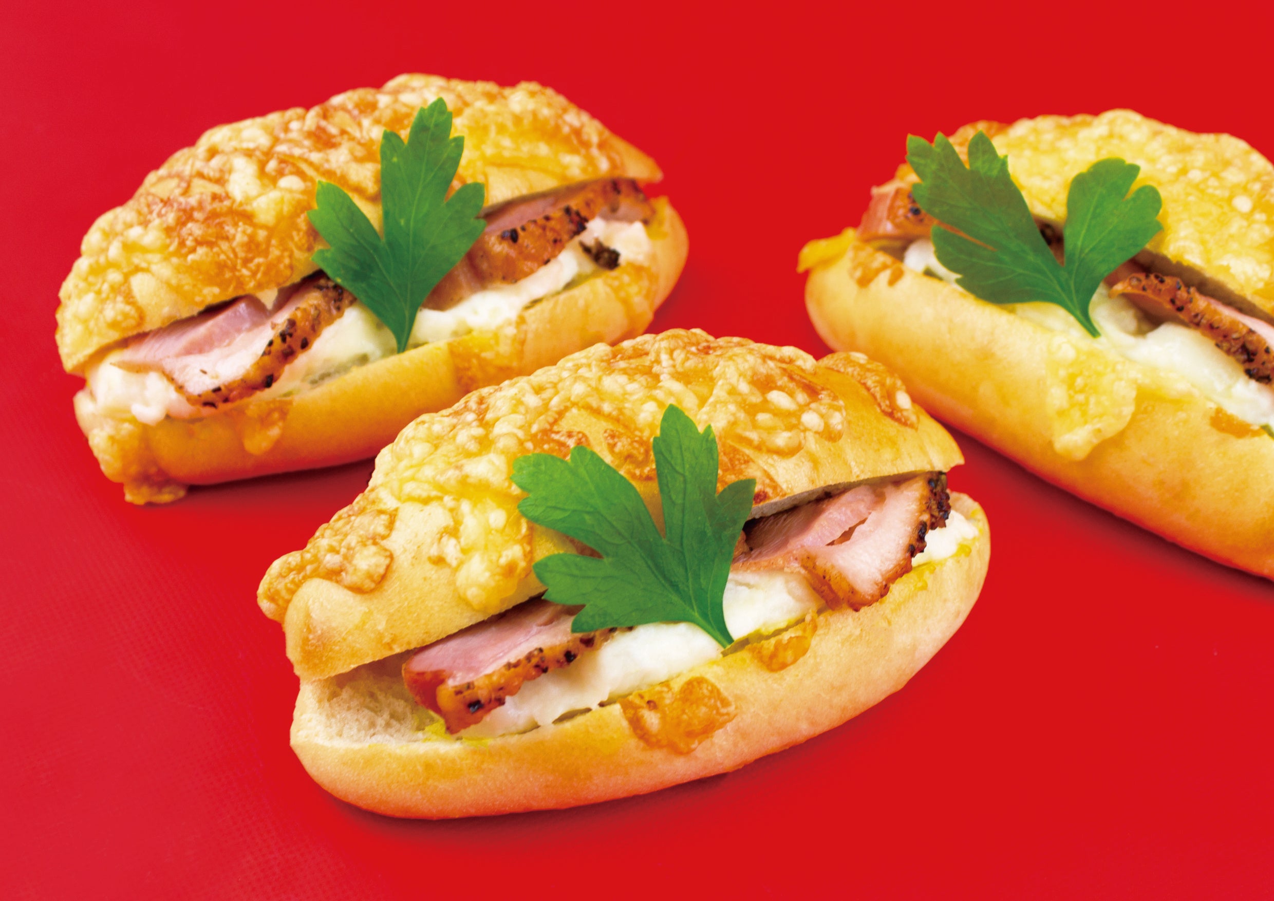 ペッパー入りの合鴨パストラミとポテトサラダ、マスタードフィリングを挟み焼き上げました。パストラミとポテトサラダは大人な組み合わせ。おつまみにもおすすめの一品です。