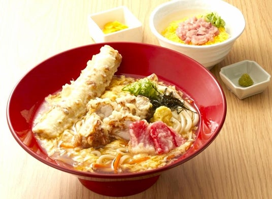 得とり唐天玉子とじあんかけうどんセット ※写真はミニネギトロ丼を組み合わせた場合