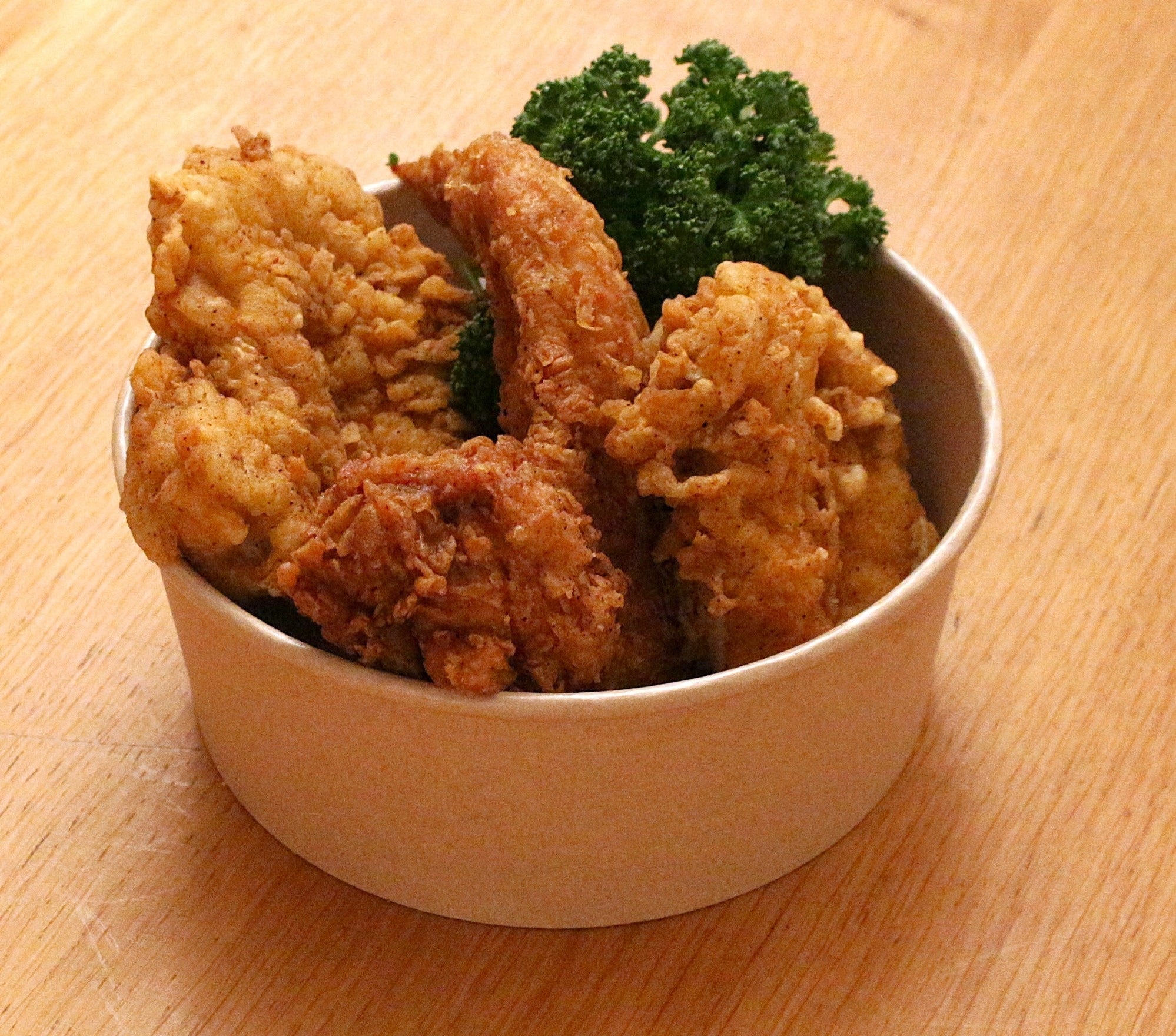 国産の鶏モモ肉を使用したジューシーなフライドチキンです。