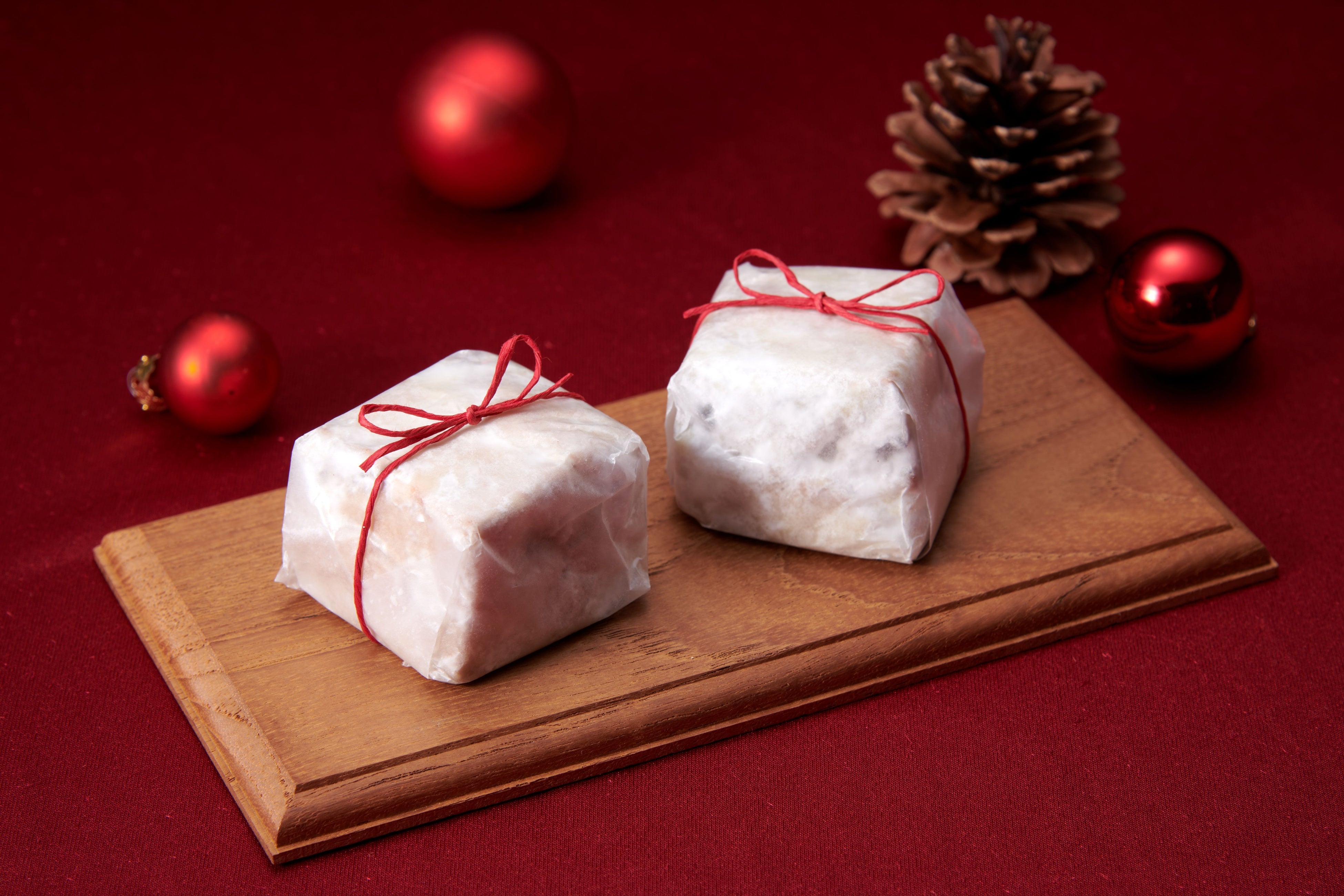 有機レーズンやクランベリー、ドライいちじく、オレンジピールを贅沢に混ぜ込み、くるみとアーモンドの香ばしさを添えました。国産バターとほんのり洋酒が香る、クリスマス限定のスコーンです。