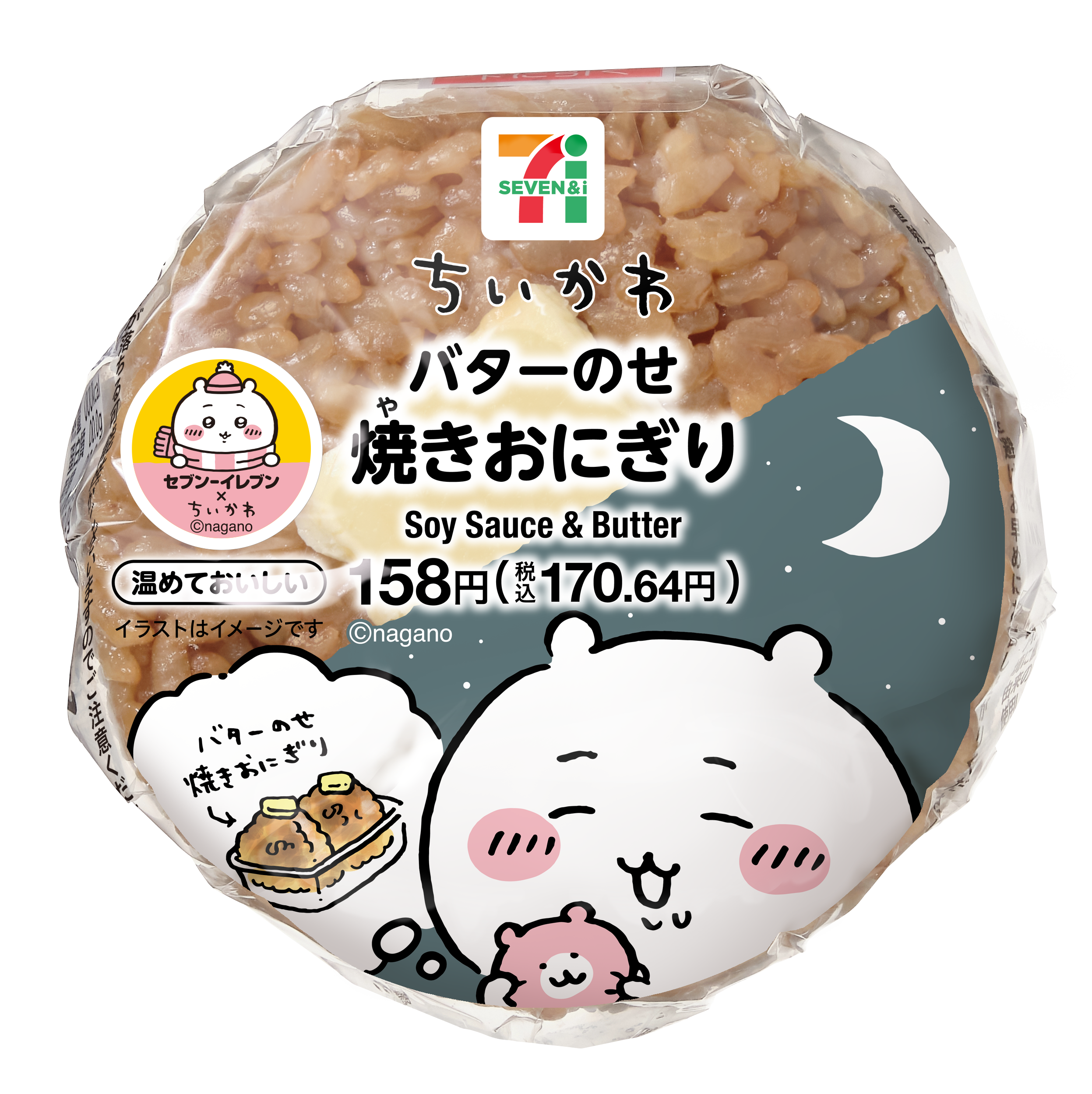 ちいかわが想像していたおにぎりをイメージした商品。醤油とバターの味わいが楽しめます。