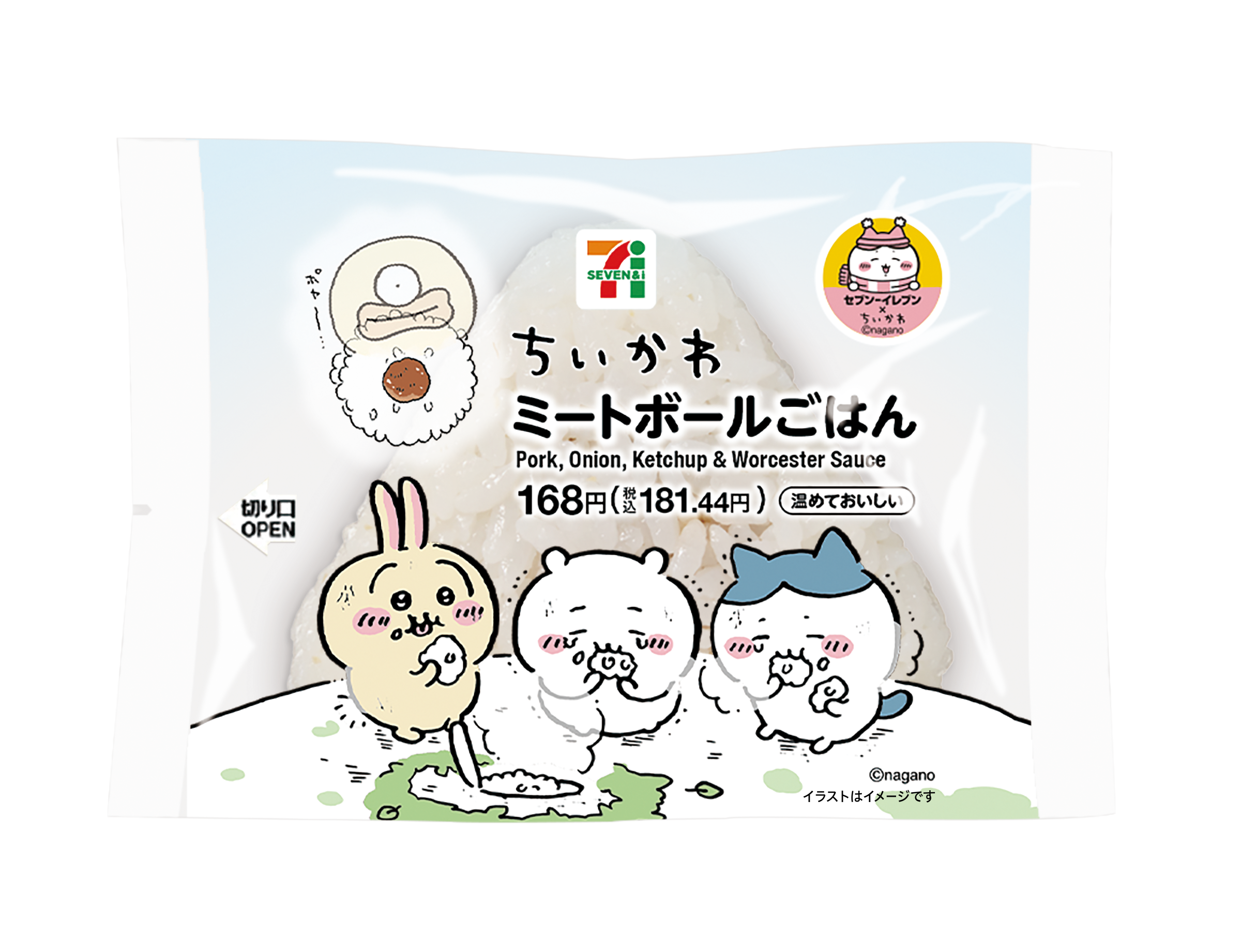 ちいかわたちが食べていたおにぎりをイメージした商品。ごはんによく合うミートボール入りで、食べ応え抜群です。