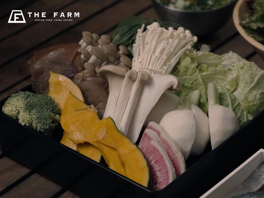 水郷佐原のブランド鶏「錦爽鶏」や、THE FARMの畑で秋から冬にかけて採れる旬野菜が彩りを添えます。
