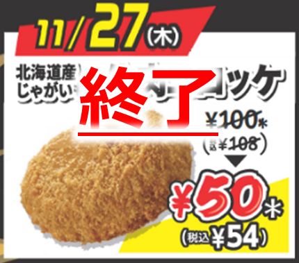 セール内容:対象の揚げ物が日替わりで半額になります。