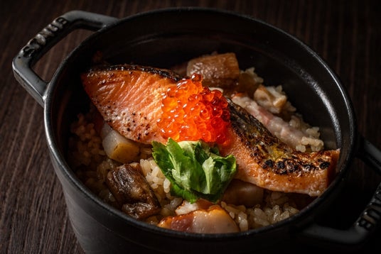 鮭と米は、日本人にとって馴染みもありご馳走感もある相性最高の組み合わせ。オーダーから30分ほどお時間をいただきじっくり炊き上げるストウブ飯や、大きな切り身と熱々のお茶で召し上がっていただくお茶漬けで、お腹をほっこり満たしてください。