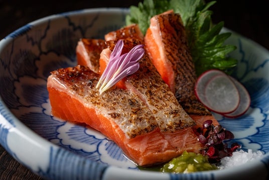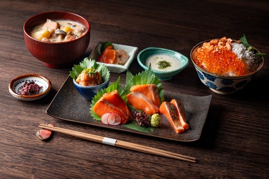 恵まれた自然環境を活かしつつ、生産者の熱意によって育まれた国産の「ご当地サーモン」の中から厳選。さらに、日本が誇る老舗ブランドのスモークサーモンも加えた王道の「刺し」や「焼き」はもちろんのこと、和洋の枠組みを越えて大胆にアレンジした鮭料理の数々を取り揃え、お食事の最初から最後までワクワクするような“鮭体験”をご提供いたします。