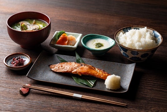 さらにこの浜松町店では、新しくランチメニューもご用意いたしました。鮭を使った5種類の主菜と、具沢山の4種類のお味噌汁を組み合わせていただく定食スタイルで、ランチタイムを楽しく美味しく彩ります。