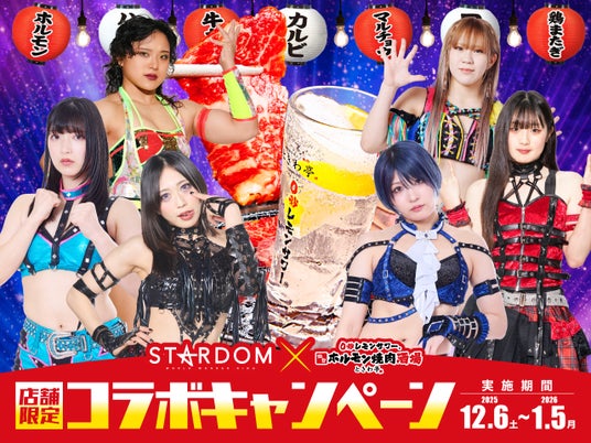 GOSSO株式会社(本社:東京都渋谷区、代表取締役:藤田建)は、「0秒レモンサワー(R)仙台ホルモン焼肉酒場 ときわ亭」新宿三丁目店など5店舗で、2025年12月6日(土)~2026年1月5日(月)の期間限定で、女子プロレス団体「スターダム」とのコラボキャンペーンを開催いたします。
