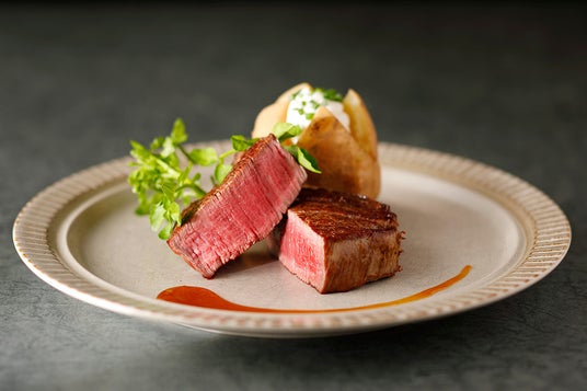 シェフ自らが目利きし仕入れた最高級の和牛が常時6~8種類揃う、ステーキハウス「リブルーム」。最高の火入れを実現するため、1枚ずつ丁寧に焼き上げる自慢のステーキも、グルメクーポンでお得にご利用いただけます。スープとSATSUKIデザートプレートが付いた『クオリティーコース』は、特別な日のご褒美ランチにもぴったりです。