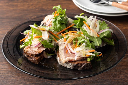 鰤のタタキ 胡麻風味のカルパッチョ 彩野菜を添えたクロスティーニ