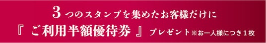 3種類すべてのアフタヌーンティーセットをお楽しみいただいたお客様に、次回よりご利用いただけるアフタヌーンティーセットの「ご利用半額優待券」をプレゼント